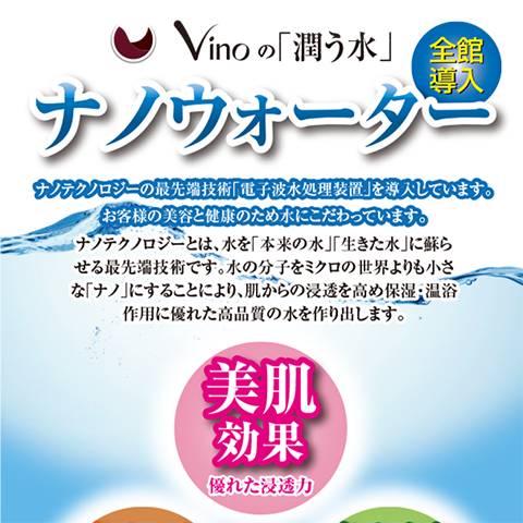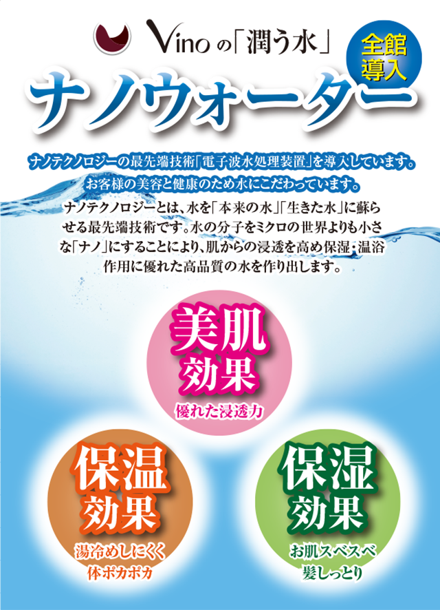 保温・保湿効果、美肌効果もあるナノウォーターを全館導入しました!