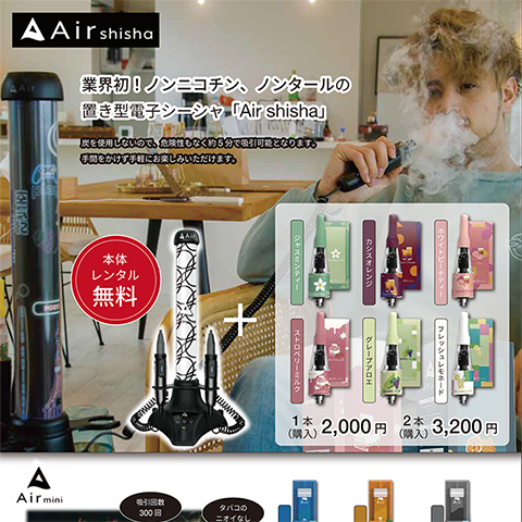 ノンニコチン&ノンタールの「Air shisha」「Air mini」の販売を始めました。